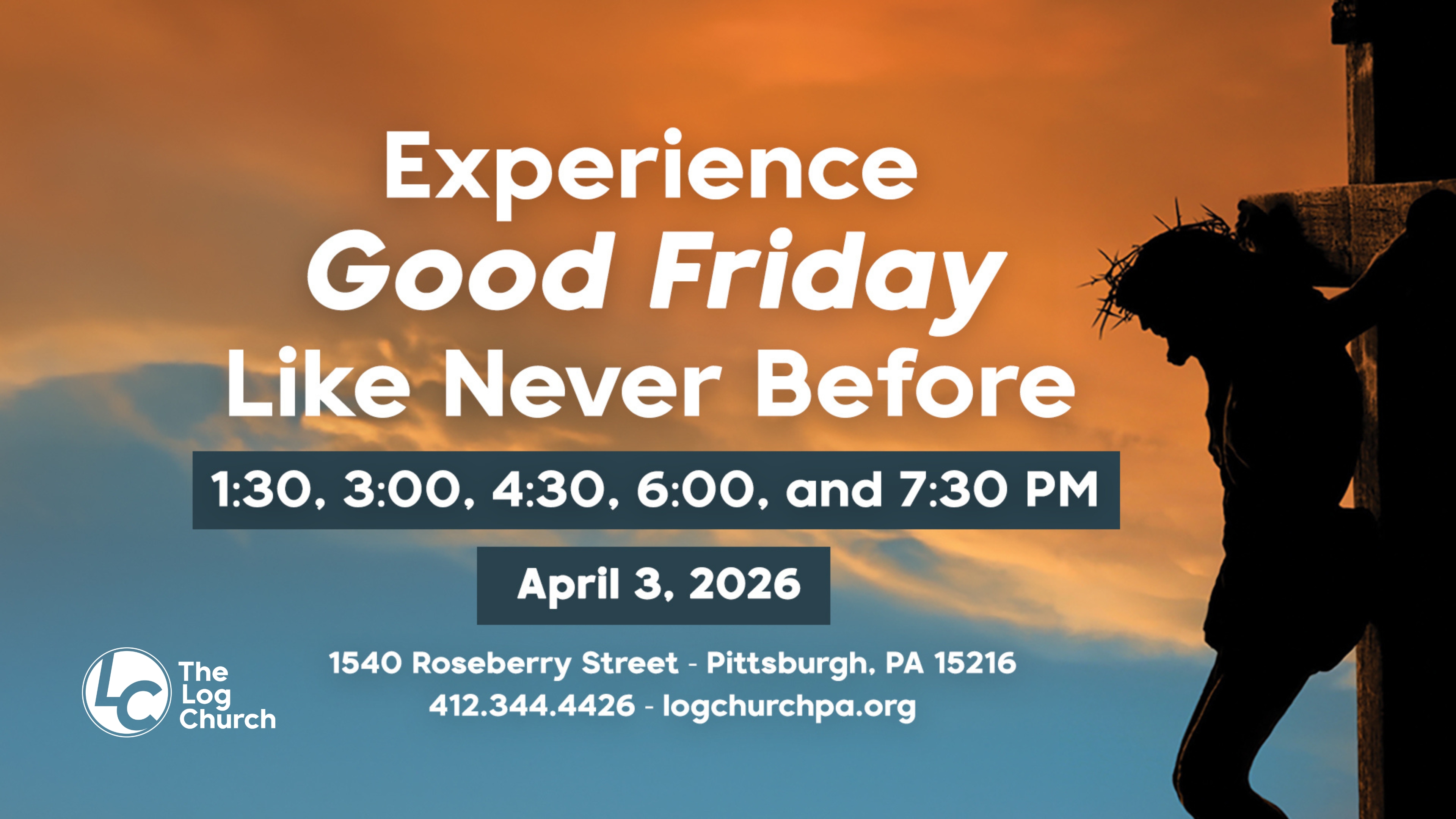 On April 3, 2026, we will offer several identical services throughout the afternoon and evening, giving you multiple opportunities to attend. Each gathering will include a time of worship, Scripture, and reflection on Christ’s sacrifice, helping you prepare your heart for Easter.